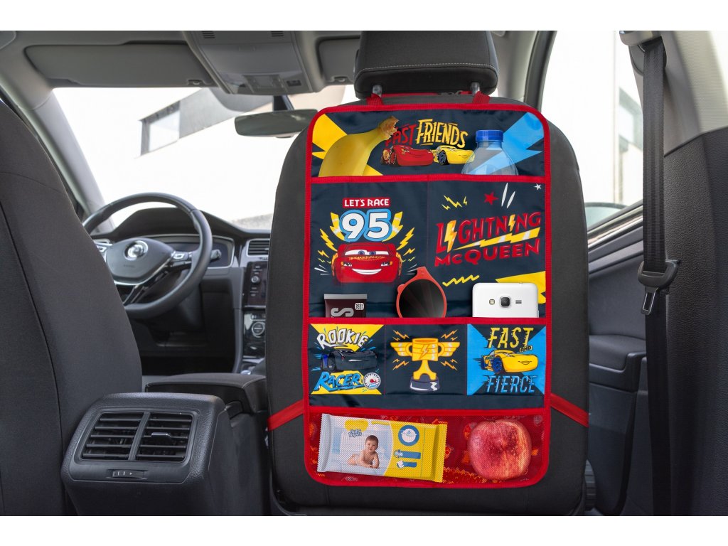 Organizér do auta - super pomocník na cesty s dětmi. Je vhodný pro většinu autosedaček a také do dětských kočárků nebo golfových holí. Snadno se instaluje pomocí nastavitelných popruhů vybavených rychlosponami. Organizér má různě velké kapsy na lahve, svačinu, hračky, ubrousky. Na vše, co je při cestách s dětmi potřebné a vše je vždy po ruce.