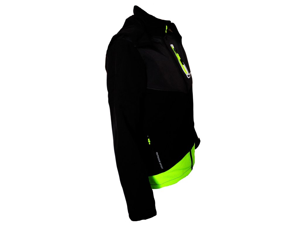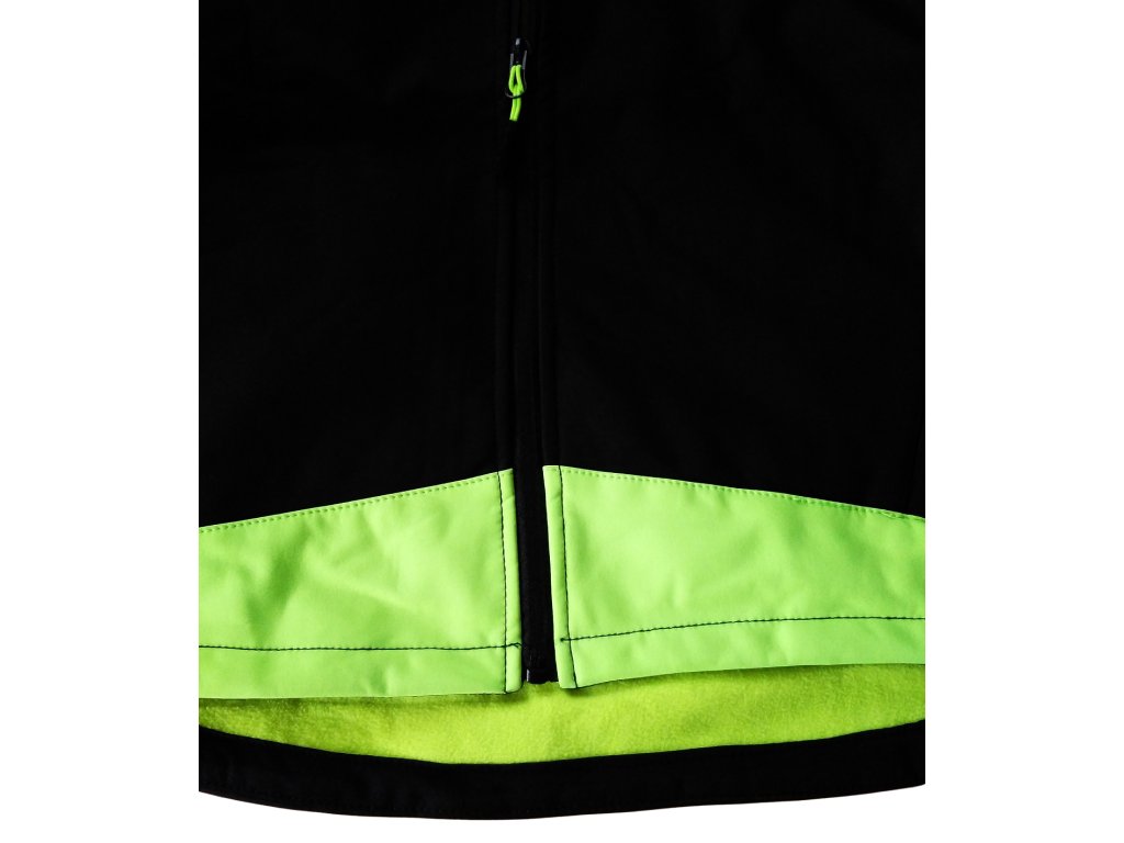 Velmi pěkná sofshell bunda pro kluky i holky s neonovými prvky a neonovým podšitím. Bunda je vhodná do chladnějšího počasí, má teplé a hřejivé fleece podšití. Bunda je velmi kvalitní svým zpracováním i materiálem. Má prodlouženou zádovou část šitou do oblouku. U krku stojáček, aby nezafukovalo a samozřejmostí je i odepínací kapuca na zip. Přední kapsy jsou také se zapínáním na zip. Rukávy jsou na koncích opatřeny regulací a suchý zip. Bunda je odolná proti větru, prodyšná a má reflexní prvky.