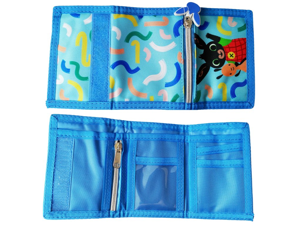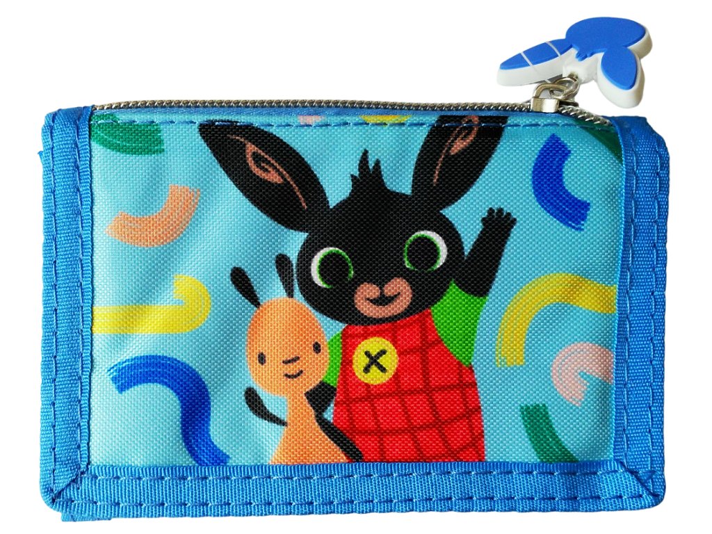 Zajíček Bing a jeho kamarád Flop vědí, jak se starat o penízky. Pomůžou s tím i vašim dětem. Velmi krásná a hlavně praktická peněženka, uvnitř přihrádka na zip na drobné, velká na bankovky a další malé přihrádky na doklady, karty. Peněženka má i další přihrádku se zapínáním na zip na své lícové straně.