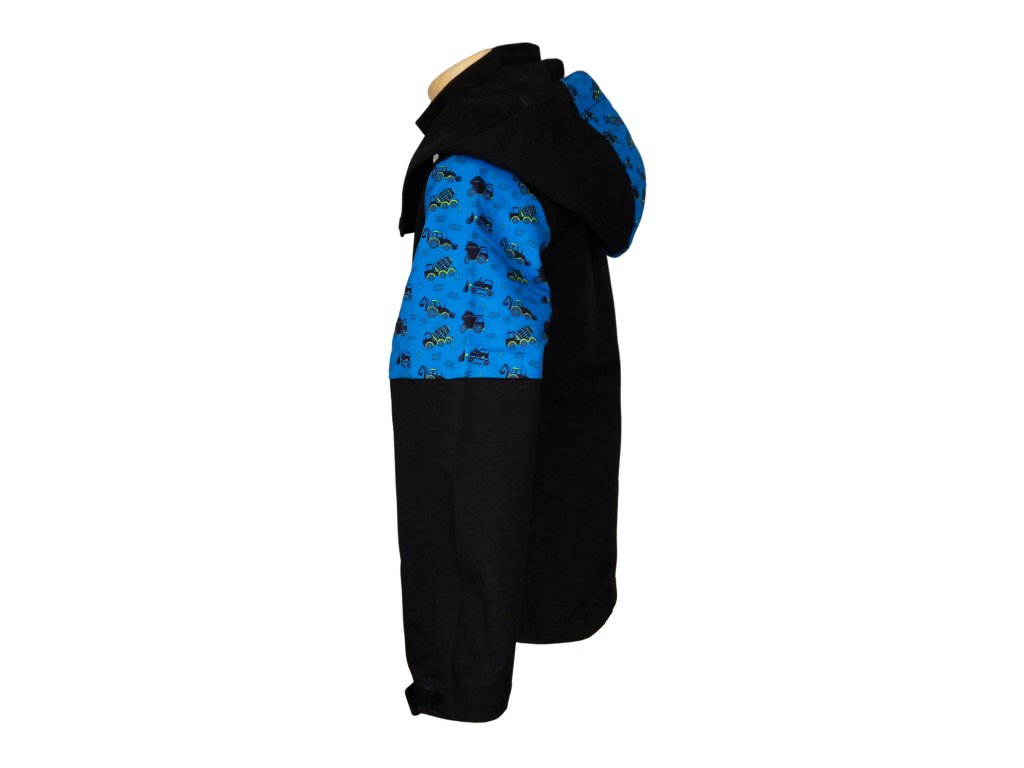 Chlapecká bunda do každého počasí a navíc s bagrem a stavebními dopravními prostředky. V takové bundě se budou kluci cítit moc fajn. Navíc je velmi kvalitní svým zpracováním i materiálem. Bundička je lehčí, bez vyteplené podšívky, má prodlouženou zádovou část šitou do oblouku. U krku stojáček, aby nezafukovalo a samozřejmostí je i odepínací kapuca na zip. Přední kapsy jsou také se zapínáním na zip, vnitřní bez zapínání. Rukávy jsou na koncích opatřeny regulací a suchý zip. Bundička je odolná proti větru, prodyšná.