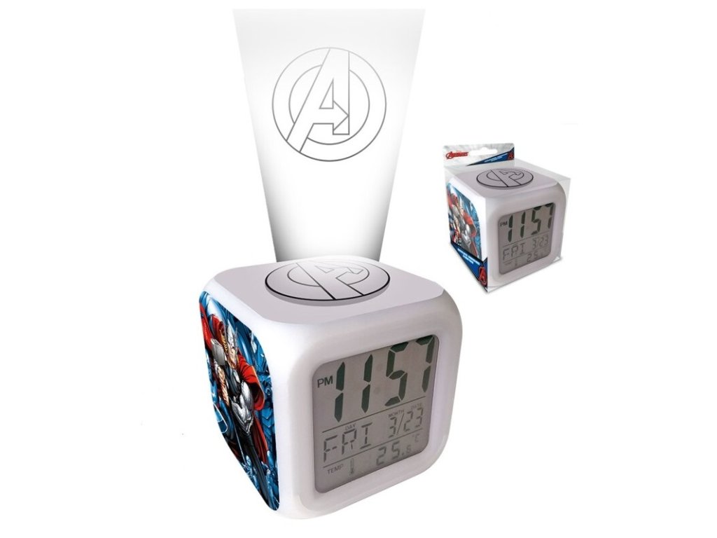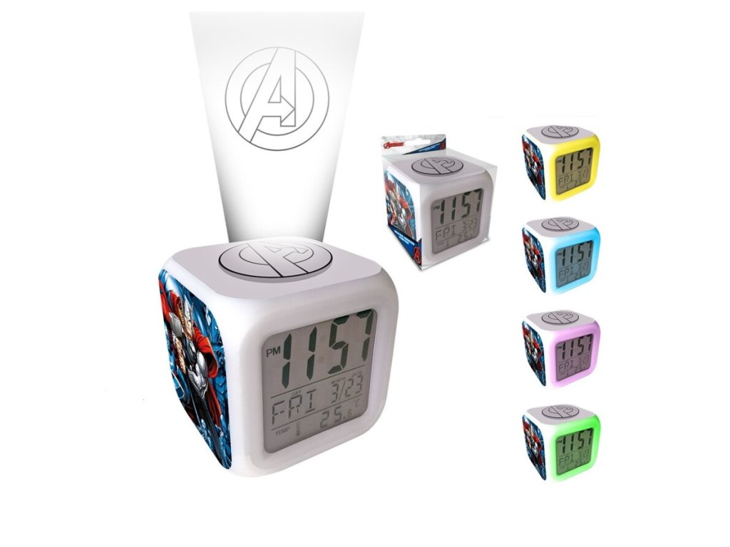 Superhrdinové nesmí nikdy zaspat a být vždy a všude včas. K tomu pomůže suprový multifunkční budík Avengers, který bude i krásnou dekorací do dětského pokojíku. Praktický budík ve tvaru kostky s LED podsvícením v různých barvách. Funkce: čas, datum, den, teplota, buzení.