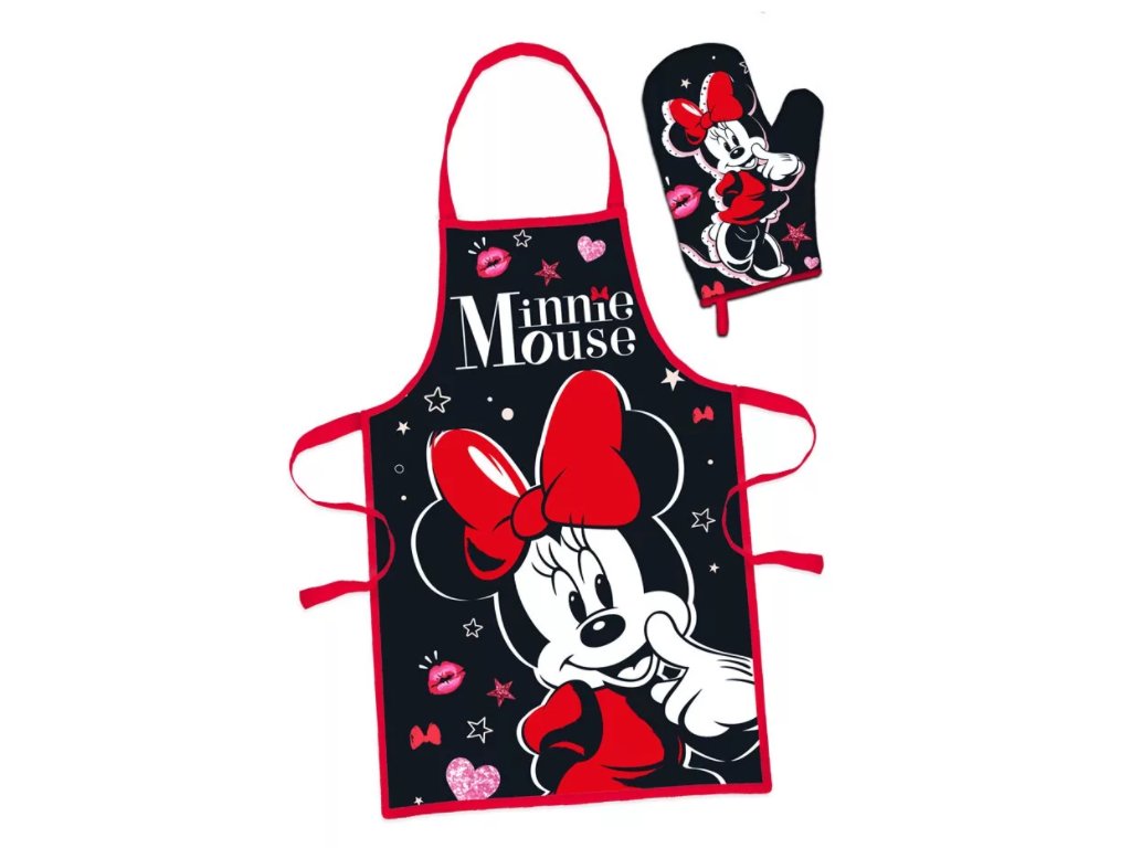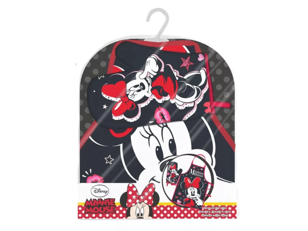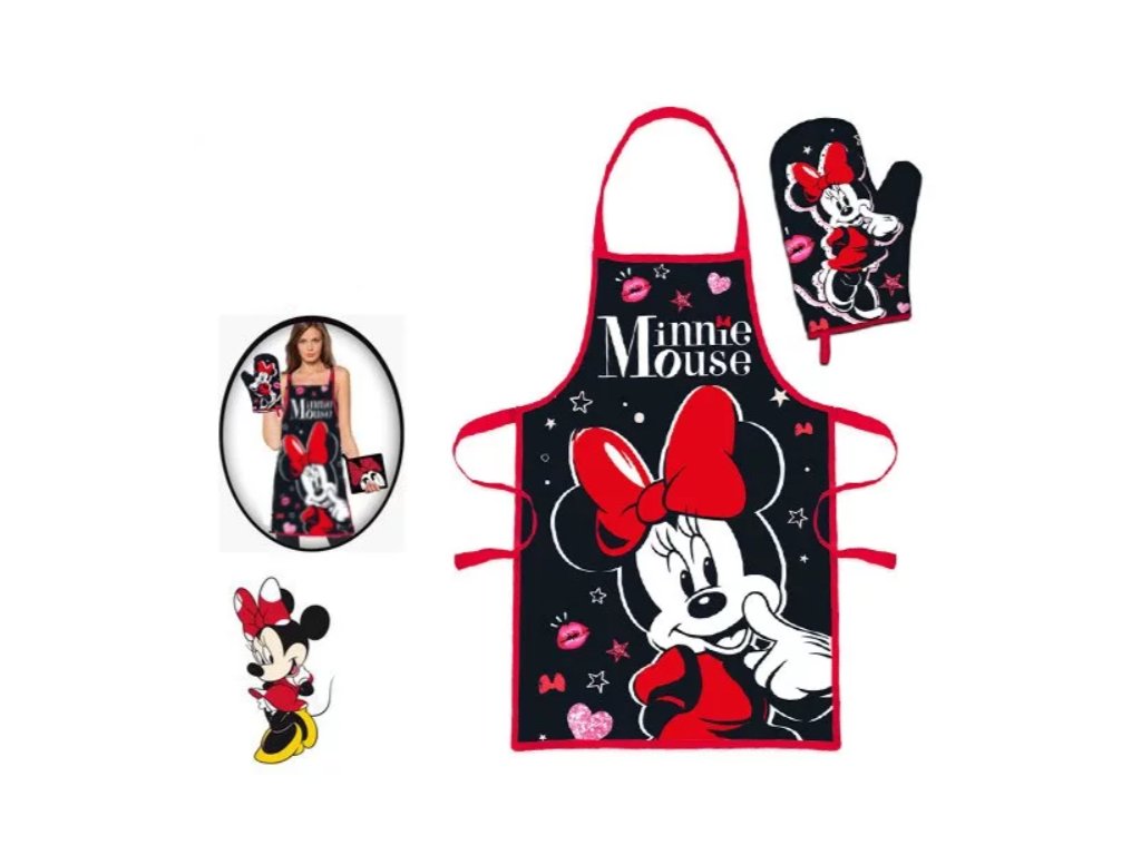 Dámská zástěra Minnie. Chcete být šik i v kuchyni a máte rády pohádky? Co tak parádní dámská zástěra s kouzelnou myškou Minnie? Nádherný set pro maminky, babičky, tety, slečny i snachy je zde. Součástí balení je i praktická chňapka, kterou mnohokrát využijete.