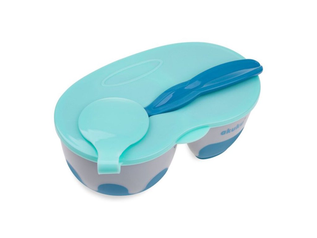 Dětská dvoukomorová miska se lžičkou Akuku. Tato dokonalá dětská jídelní sada se pyšní ergonomickým provedením, které vyhovuje potřebám našich nejmenších dětiček. Je výborným pomocníkem při získávání nových zkušeností se správným stolováním.