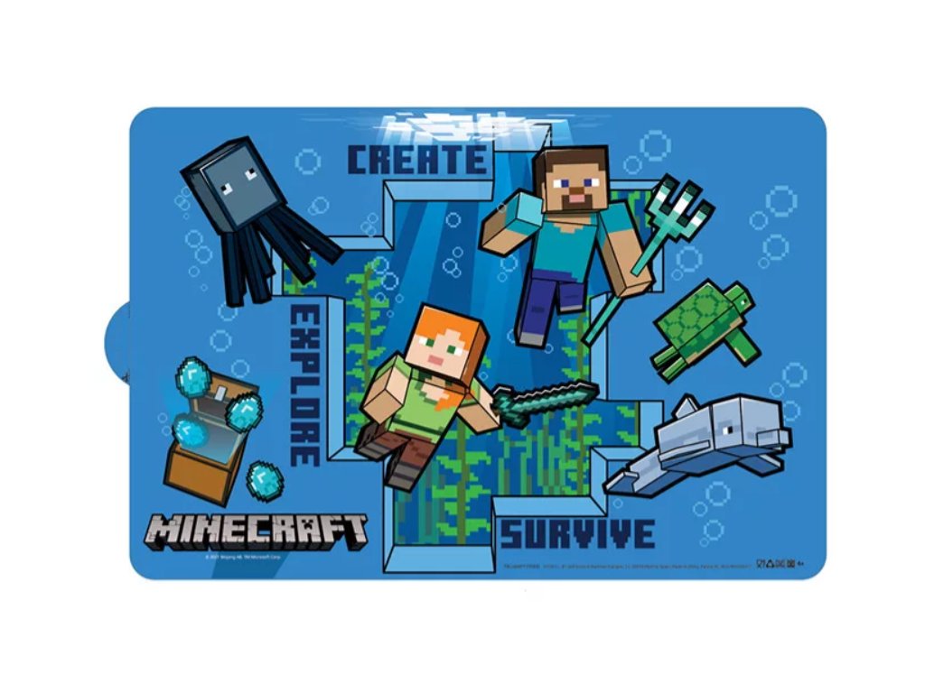 Jídelní podložku Minecraft pod vodou ocení fanoušci této PC hry. Podložka chrání jídelní stůl před náhodným politím a potřísněním. Jídelní podložka je suprová nejen při stolování, ale i pro hrátky s modelínou, apod. Je vyrobena z kvalitního a dobře omyvatelného plastu.