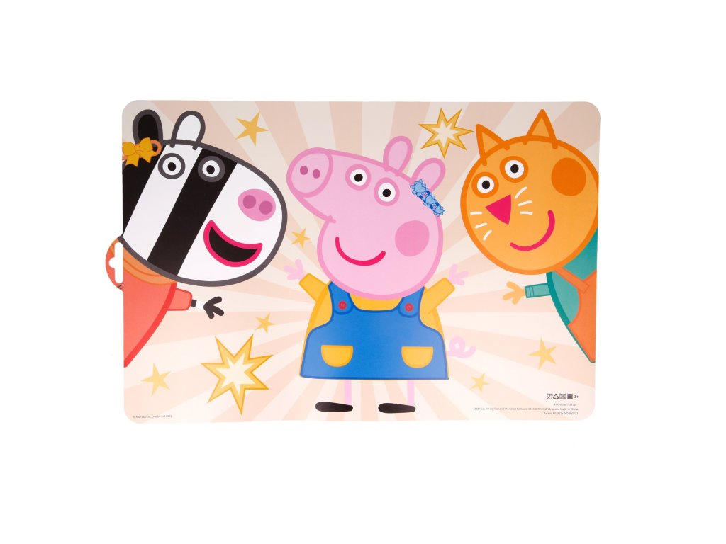Prasátko Pepina a její přátelé také moc rádi papají. S touto jídelní podložkou se nějaké kapky polívčičky nebo omáčky mimo talířku nebojíte, stačí hadřík a vše je zase čisté. Podložka pro děti má snadno omyvatelný povrch, který zároveň chrání jídelní stůl před náhodným politím a potřísněním. Jídelní podložka je suprová nejen při stolování, ale i pro hrátky s modelínou, apod. Je vyrobena z kvalitního a ohebného plastu a opatřena trvanlivými barvami.