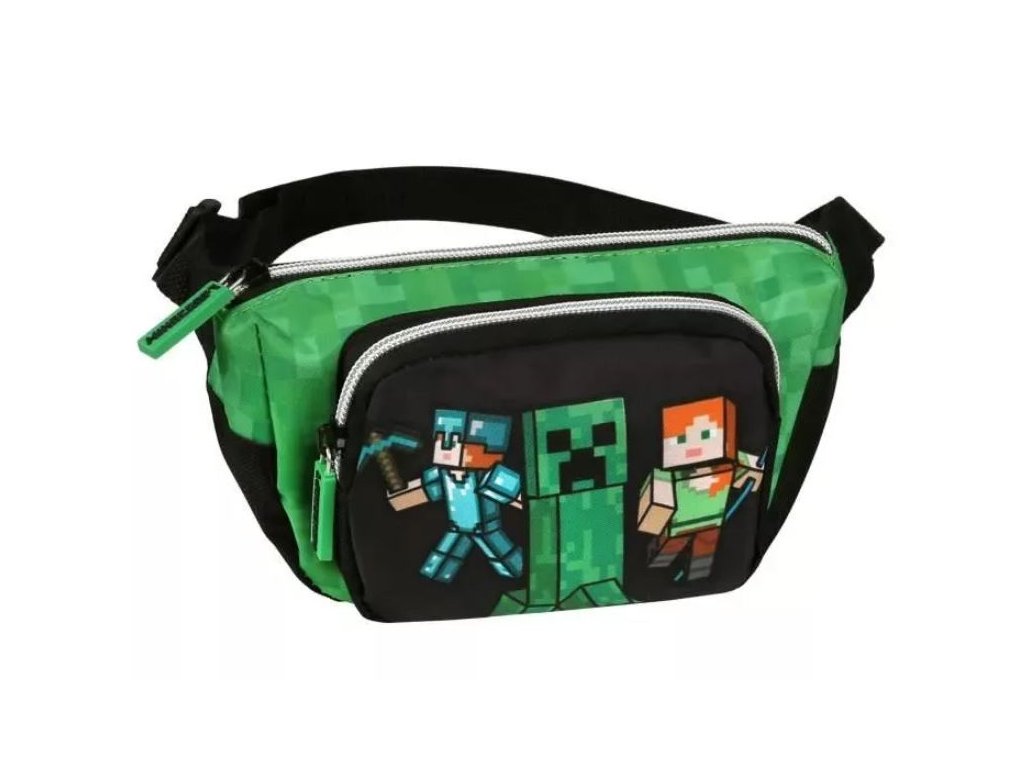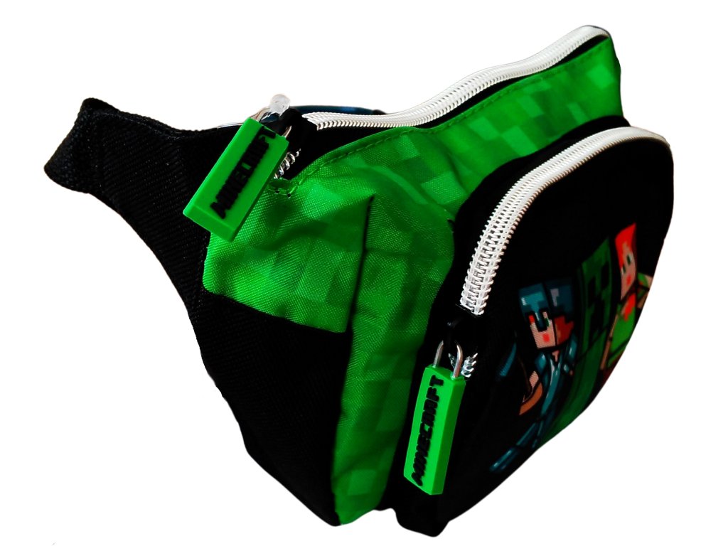 Ledvinka Minecraft. Na doklady, peněženku, mobil a vše, co je potřeba mít pod kontrolou je ledvinka jednoznačně perfektním pomocníkem. Velmi praktická a kvalitní ledvinka Minecraft má jednu prostornou kapsu s uzavíráním na zip a druhá menší je také s uzavíráním na zip. Břišní popruh s regulací délky je určen pro pas max obvodu cca 120cm.