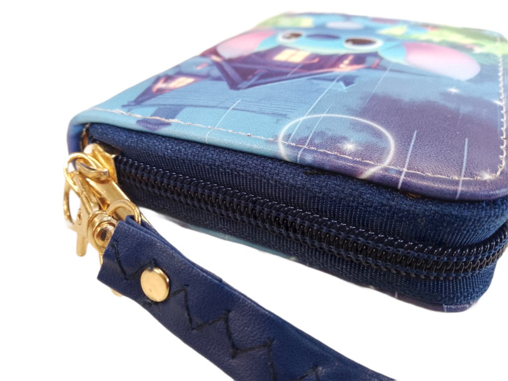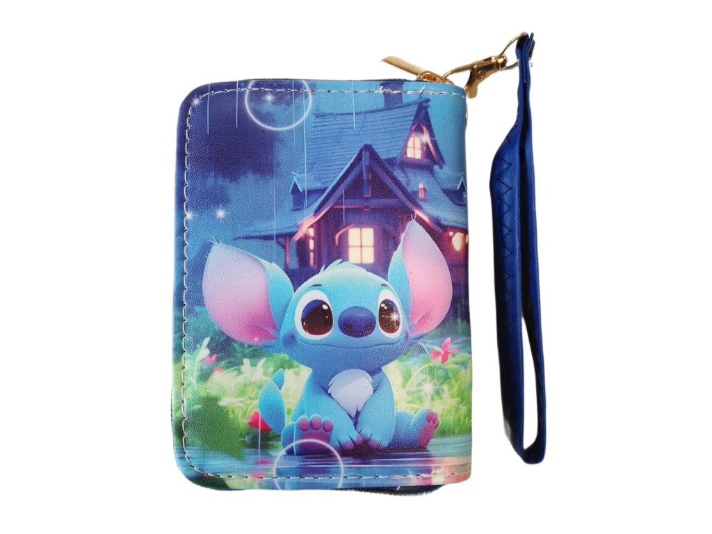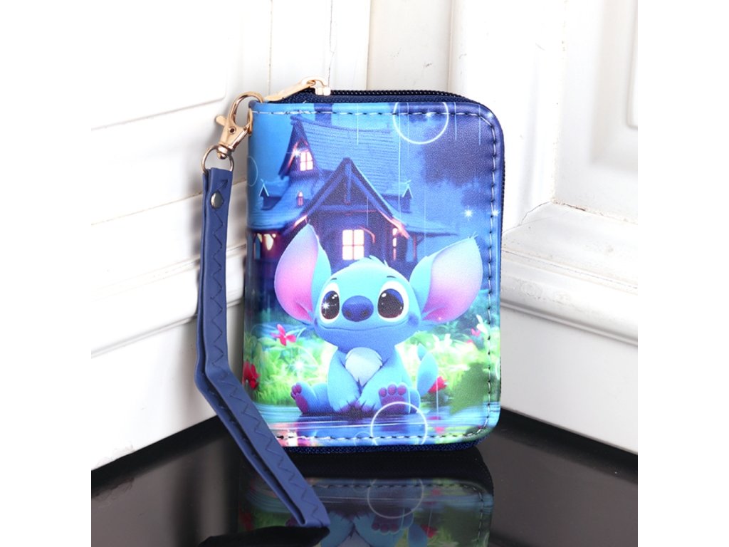 Na přední straně je vyobrazen modrý mimozemšťan Stitch v kouzelné noční scenérii u domečku se světly, což dodává peněžence pohádkový vzhled plný fantazie. Postavička Stitch působí hravě a přátelsky, takže si ji děti okamžitě zamilují.