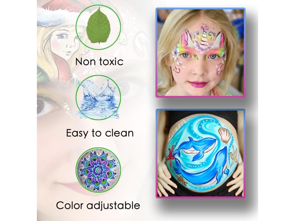 Sada je vhodná pro kreativní hraní i rozvoj fantazie dětí. Umožňuje vytvářet zvířecí motivy, masky superhrdinů, princezen nebo strašidelných postav. Díky široké škále odstínů se hodí jak pro jemné líčení, tak pro výrazné efekty, které zaujmou na první pohled.