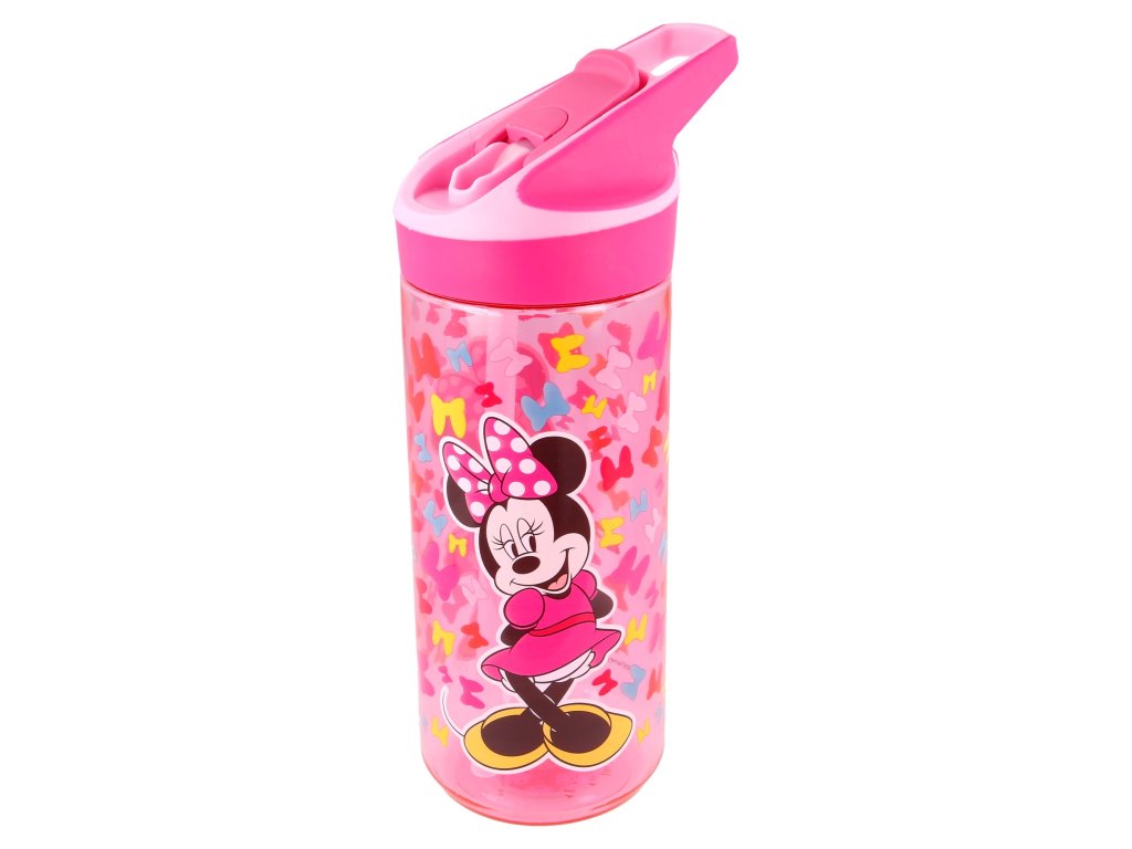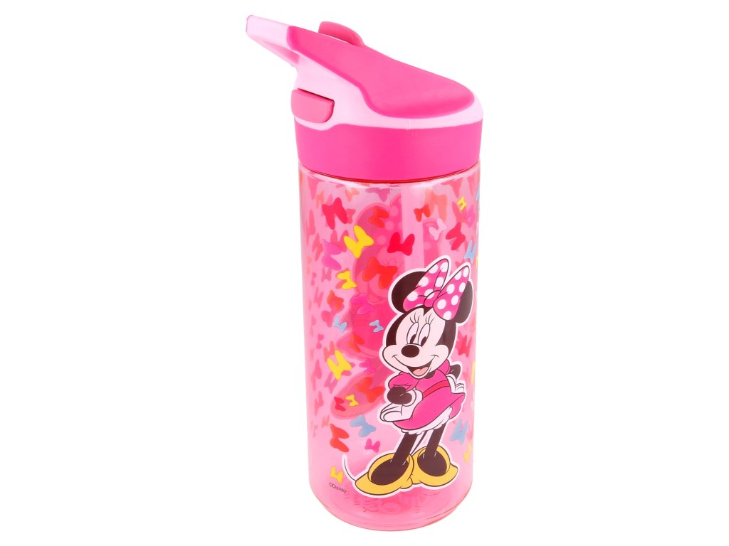 Miška Minnie má ráda dobré pitíčko. Tritanová lahev Minnie je i pro vaše holčičky výborným pomocníkem nejen do školy a na výlety. Tuto lahev si děti velmi rychle oblíbí. Láhev je vyrobena z prakticky nerozbitného tritanu, inovativního materiálu, který neobsahuje BPA (bisfenol A). Lahev se snadno drží a má jednoduchou odolnou výlevku na pití nahoru/dolů, ze které se pohodlně pije. Pítko se snadno lehkým tlakem zaklopí, je tedy hygienicky kryto a tlačítkem umístěným na lahvi se opět velmi rychle vysune. Kapacita: 620ml.
