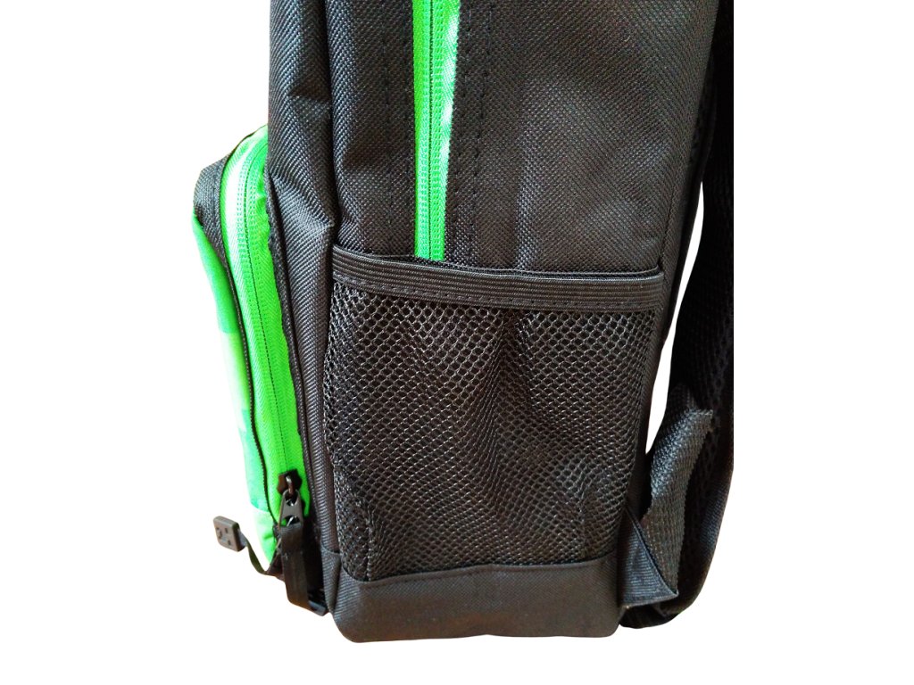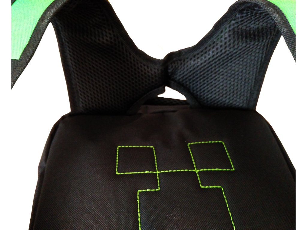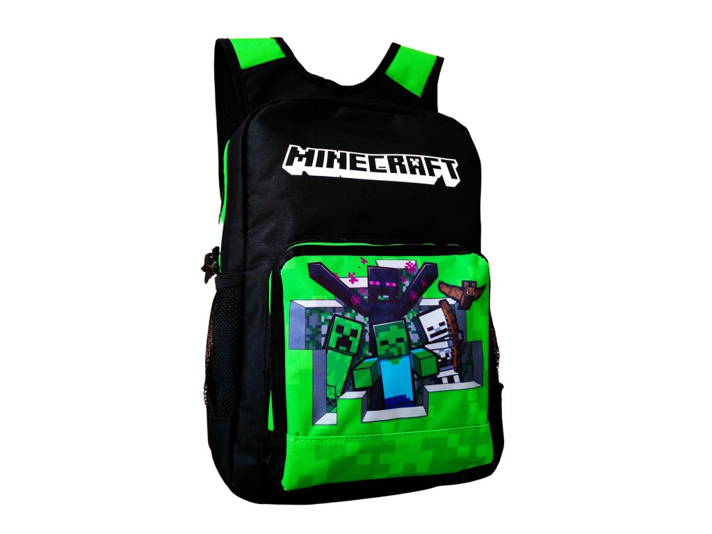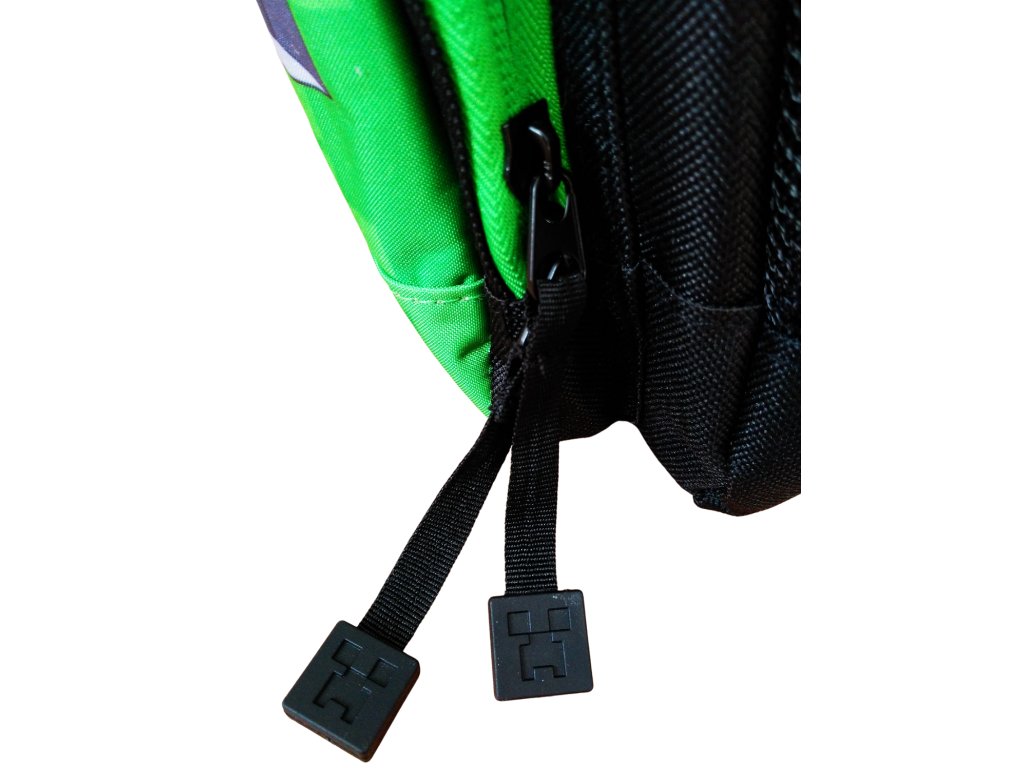 Kostičkový svět i na zádech? Fanoušci této hry musí mít Minecraft tematiku na sobě, v pokoji i na zádech, prostě všude okolo sebe. Nádherný batoh Minecraft je ve velmi kvalitním zpracování. Zapínání na zipy, s přední malou kapsou také se zipem. Po stranách síťové kapsy. Popruhy i celá záda jsou polstrované. Batoh má v horní části i kvalitní poutko pro ruční přenášení také s velmi kvalitním polstrováním.