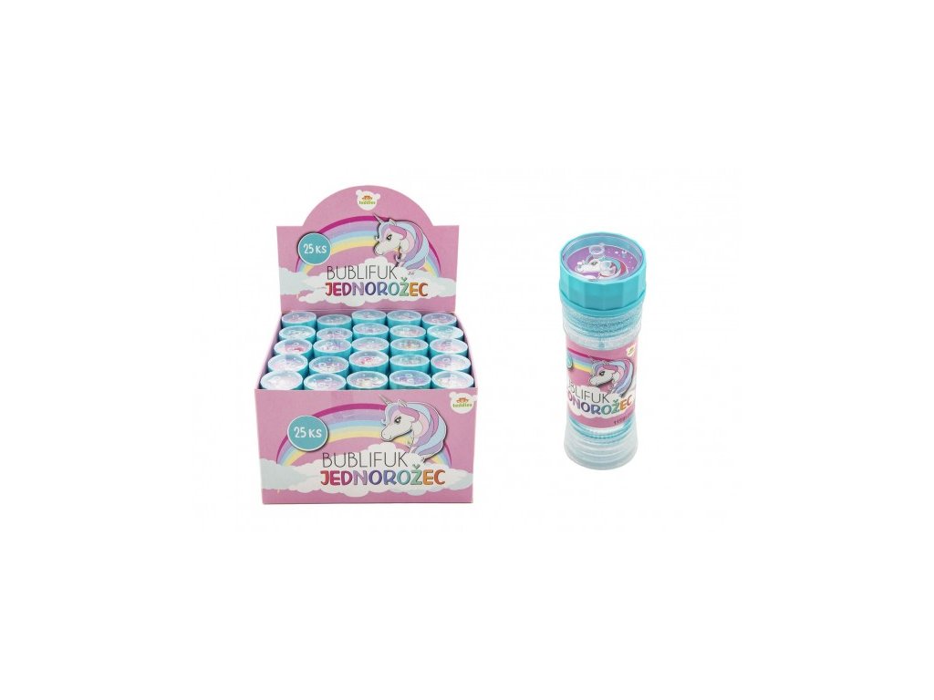 Milují vaše holčičky bublinky a jsou fanynky bájných Jednorožců? Pak s koupí bublifuku s Jednorožcem neváhejte. S kouzelnými duhovými bublinkami si děti užijí spoustu zábavy. Bublifuk s Jednorožcem udělá radost všem hravým holčičkám a pokud chystáte dětskou party, pak bublifuk nesmí chybět. Na vrchní části balení je obrázkový labyrint - hlavolam s kuličkou. Obrázek Jednorožce na víčku je náhodný - nelze vybírat.