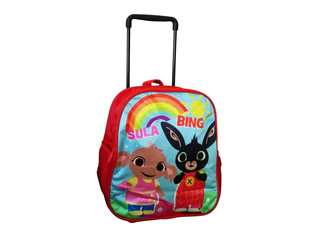 Pro všechny malé cestovatele tu máme krásný kufr se Zajíčkem Bingem na kolečkách. I děti si potřebují zabalit své důležité věci na dovolenou nebo k prarodičům. Nádherný kufr na kolečkách s výsuvnou rukojetí je prostorný, se zavíráním na zip. V horní části má i poutko pro snadné přenášení a na zádové části jsou popruhy a lze nosit i jako batoh. Kufr je velmi skladný - má sklopné dno, tak při uložení nezabere moc místa.