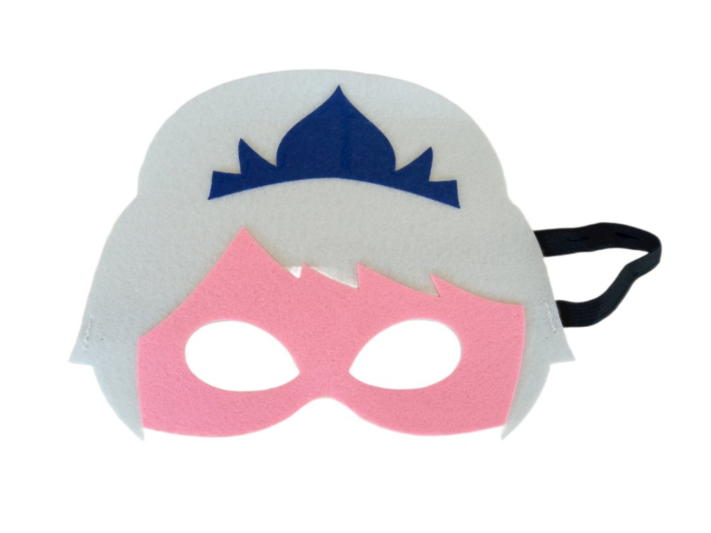 Maska je z měkkého filcového materiálu, zdobená motivem sněhové vločky, a díky pružné gumičce dobře drží na hlavě. Tento set je ideální pro dětské oslavy, karnevaly i každodenní hraní na princeznu.