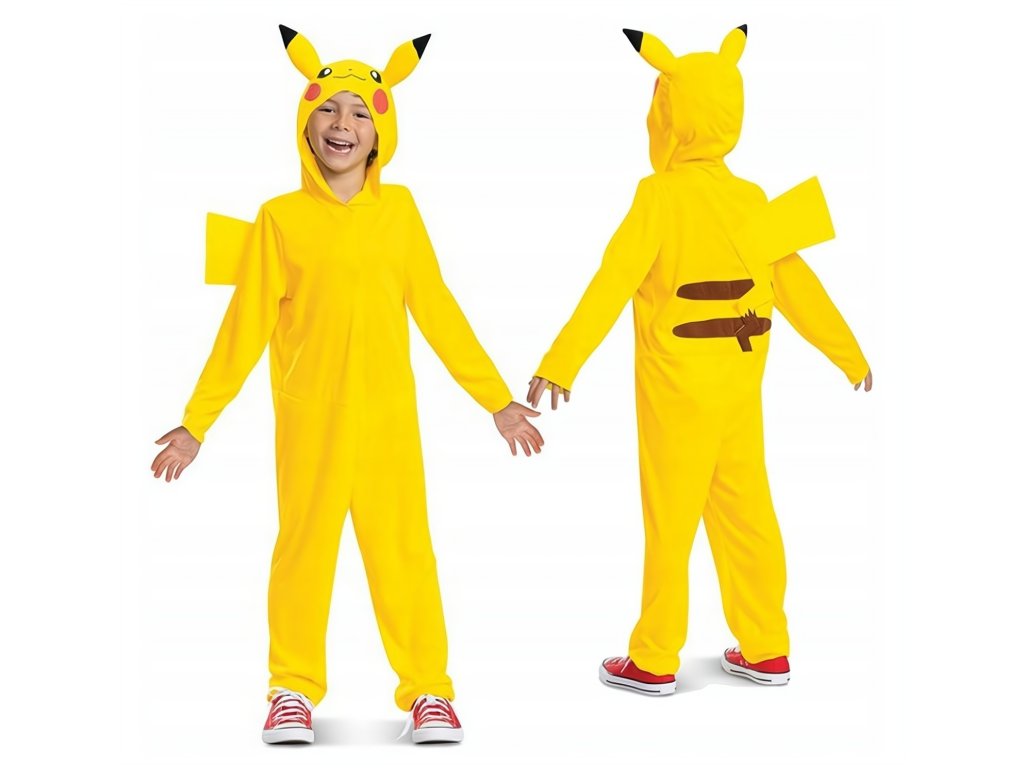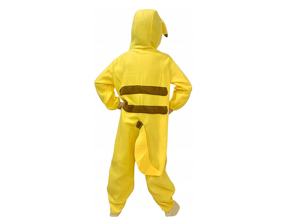 Detailní provedení kostýmu zahrnuje kapuci s Pikachuovým obličejem a měkké uši, které dodávají celému outfitu autentický vzhled. Záda kostýmu zdobí ocas, připevněný pomocí suchého zipu, což podtrhuje jeho realistický vzhled pohádkové postavičky. Celý design je navržen tak, aby dětem poskytoval radost a zároveň je přenesl do světa Pokémonů.