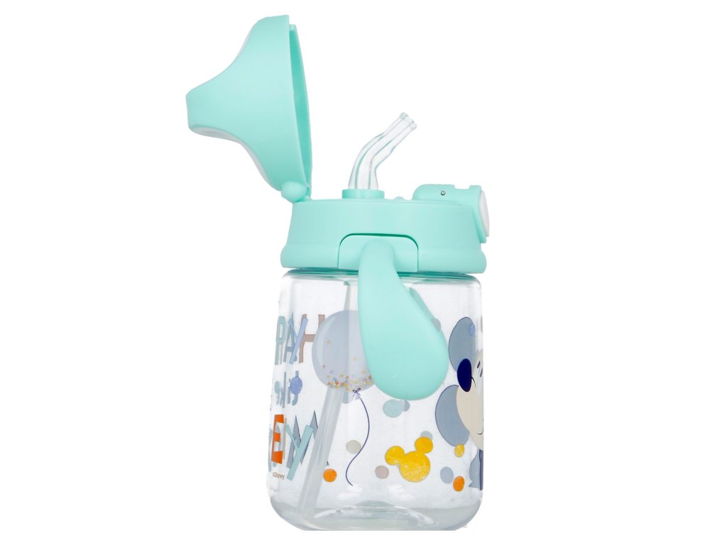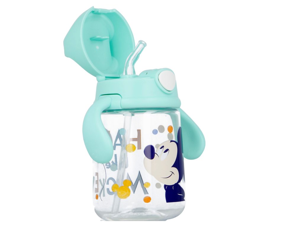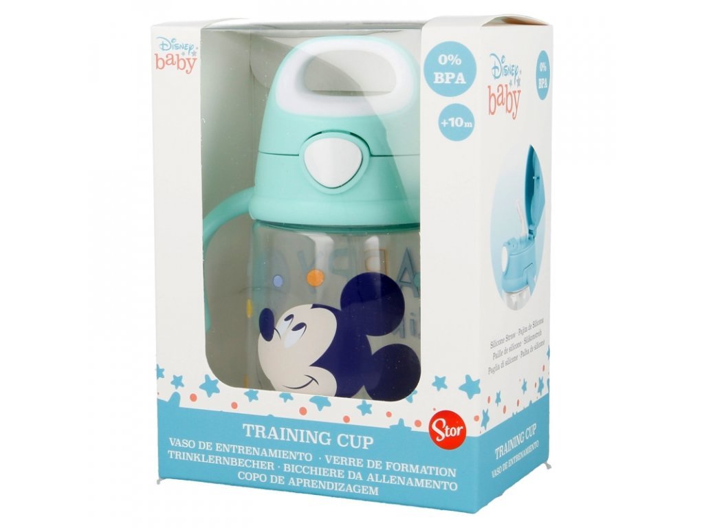 Myšák Mickey si pro vaše drobečky připravil úžasný hrneček pro první učení. Malým dětem se velmi pohodlně drží díky ergonomicky tvarovaným držátkům po stranách. Tritanová tréninková lahvička je vybavena silikonovým brčkem pro pohodlné a dokonalé přisátí, je ideální na cesty, protože neteče, nekape a nešpiní víko, které se otevírá stisknutím tlačítka. Učící hrneček je vyroben ze zdravotně nezávadného materiálu, neobsahuje BPA (bisfenol A).