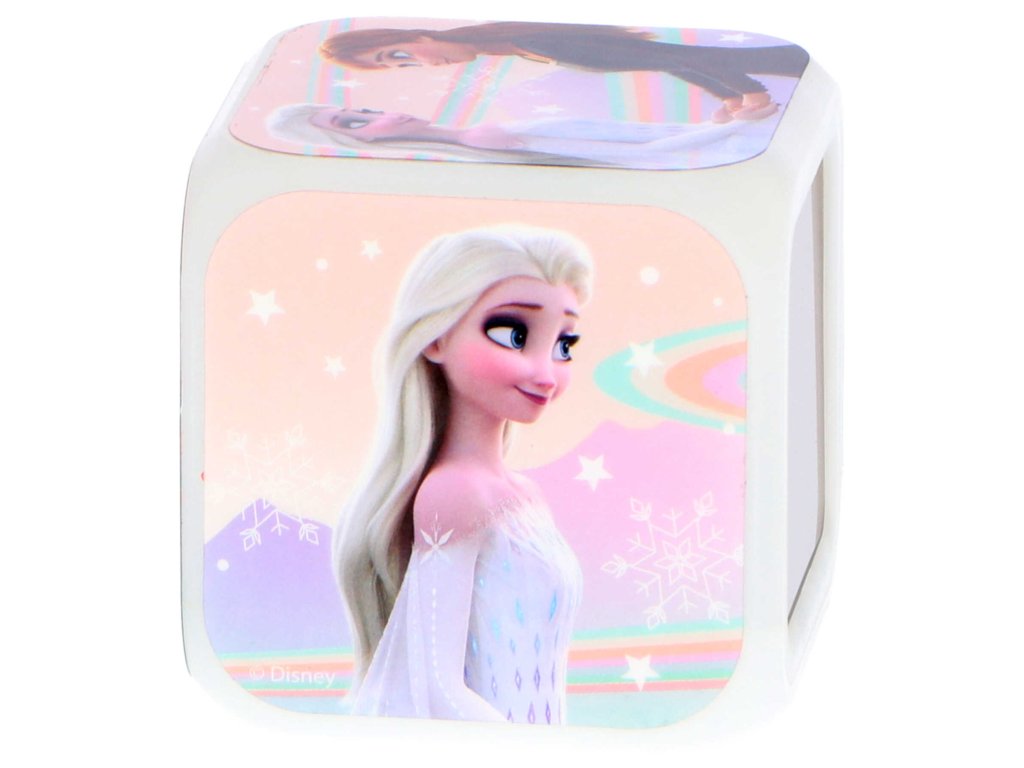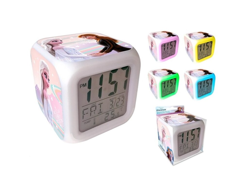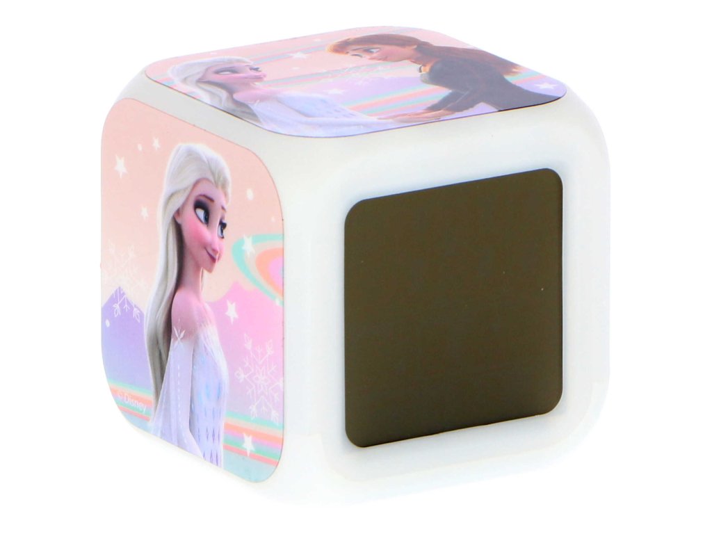 Princezny Anna a Elsa dají pozor, aby holky nezaspaly. Praktický a zároveň krásný multifunkční budík ve tvaru kostky s LED osvětlením v různých barvách je praktický doplněk do dívčích pokojíků.