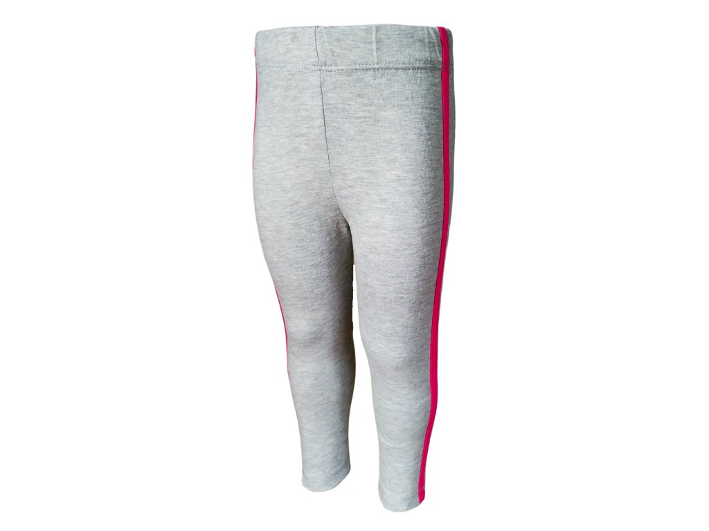 Šedé dívčí legíny se slušivým růžovým lampasem na nohavicích. Legíny budou krásně sedět, jsou výborně pružné a lehce se přizpůsobí postavě. Nízká cena a kvalita je ta nejlepší kombinace, kterou tyto legíny splňují do puntíku.