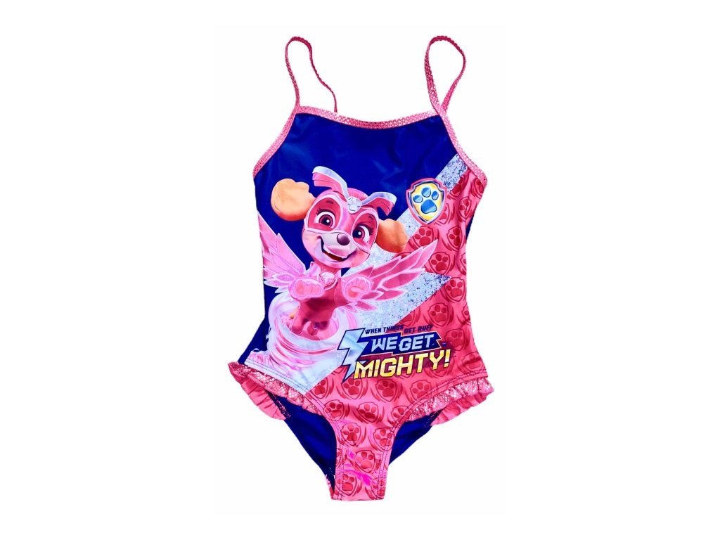 Nádherné plavky s celolátkovým motivem Paw Patrol. Plavky pro holky jsou krásně pružné a velmi pohodlné, přizdobeny drobnými volánky. Lemy a volánky jsou přizdobeny třpytivými metalickými puntíky.