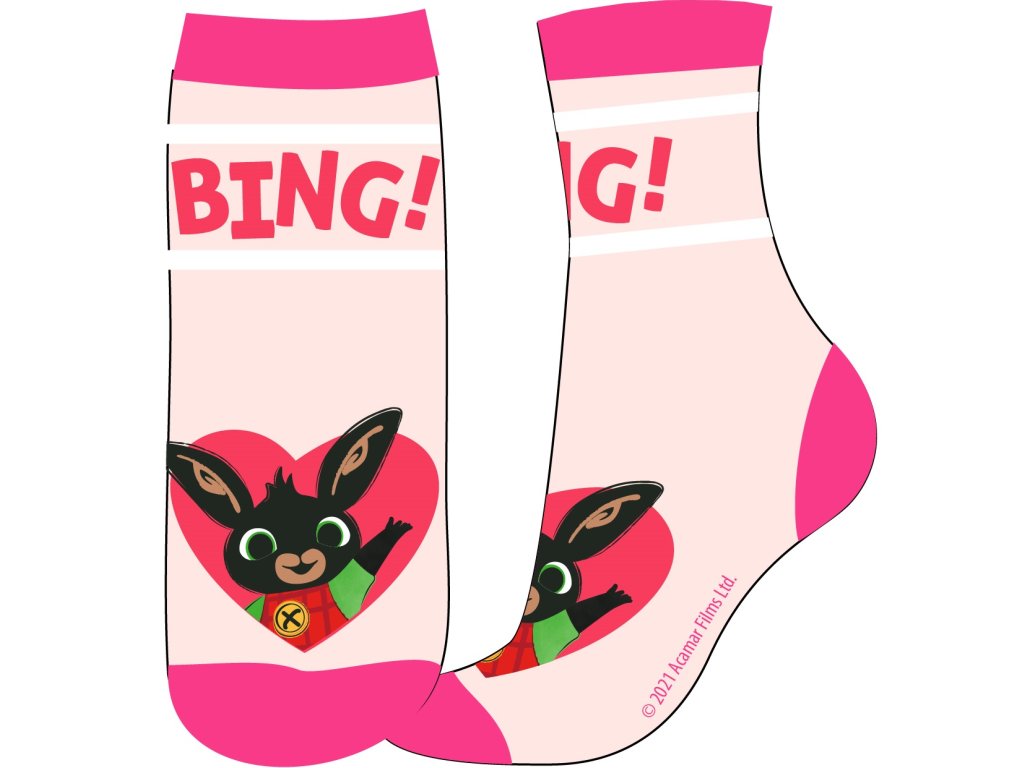 Ponožky pro holky se zajíčkem Bingem jsou pohodlné a krásně pružné ponožky, které výborně sedí a dokonale se přizpůsobí tvaru dětské nožičky. Ponožky s Bingem jsou příjemné pro dětskou pokožku, neškrtí a nespadávají. Velmi příjemný materiál s velkým obsahem bavlny.