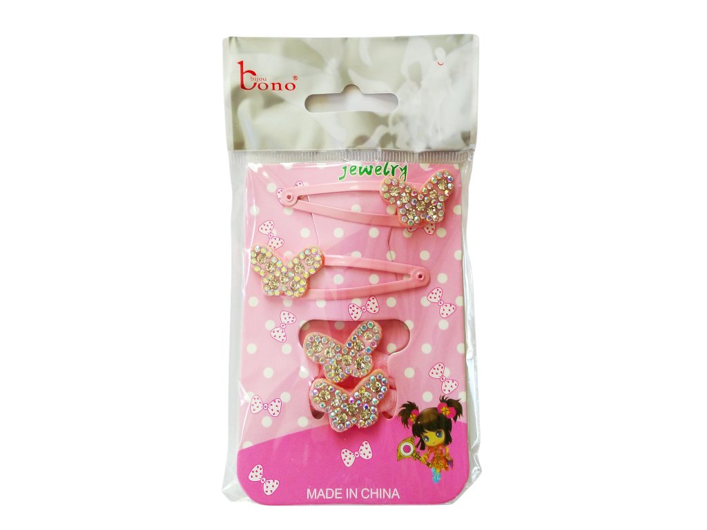 Nádherný vlasový set s motýlky. Set obsahuje 2 sponky prolamovačky a 2 gumičky s motýlky. Motýlci jsou bohatě osázeny třpytivými kamínky. Set holky uchvátí a určitě udělá radost i jako drobný dárek.