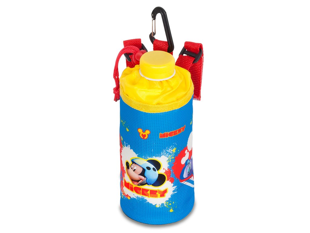 Velmi praktický a univerzální držák na láhev Mickey určený pro děti, při jejich venkovních aktivitách. Textilní držák lze snadno a rychle připevnit k řidítkům na kolo, koloběžku, kočárek, ale lze připevnit i k batohu díky karabince. Držák Mickey je polstrovaný a má zatahovací gumičku - olivku pro pevné udržení nápoje uvnitř. Připevňujte s pomocí pásků se suchým zipem, pásky lze velikostně nastavit. Textilní držák na láhev je vyroben z odolného a snadno čistitelného materiálu.