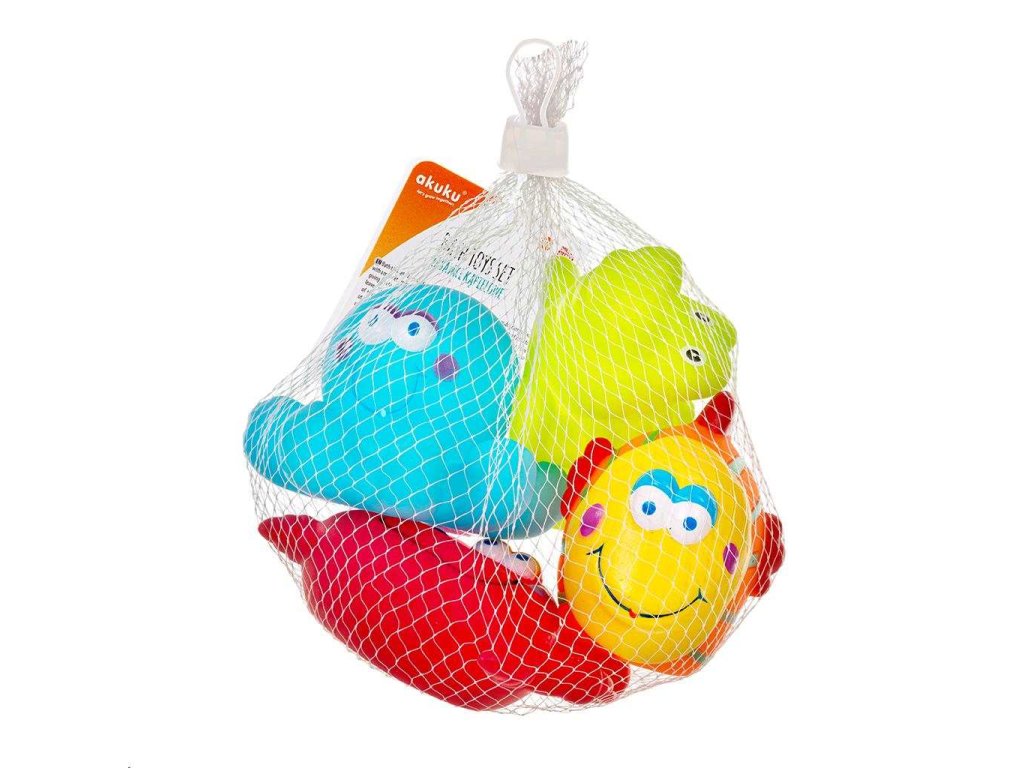 Barevné hračky do koupele Akuku. Sada 4 roztomilých barevných hraček - rybička, želvička, krab, chobotnice. Ideální na hraní ve vaně. Veselé barvy přitáhnou pozornost našich nejmenších. Každá hračka má otvor, kterým můžete stříkat vodu. Zaoblené tvary zaručují bezpečnost během hry. Vyrobeny z bezpečných, vysoce kvalitních materiálů, neobsahují bisfenol A.