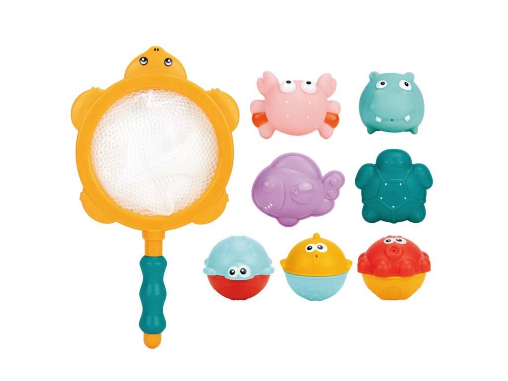 Barevné hračky do koupele Baby Mix. Sada 8 roztomilých barevných hraček - sítko a 7 zvířátek, je ideální na hraní ve vaně. Veselé barvy přitahnou pozornost našich nejmenších. Hračky mjí otvor, kterým můžete stříkat vodu.