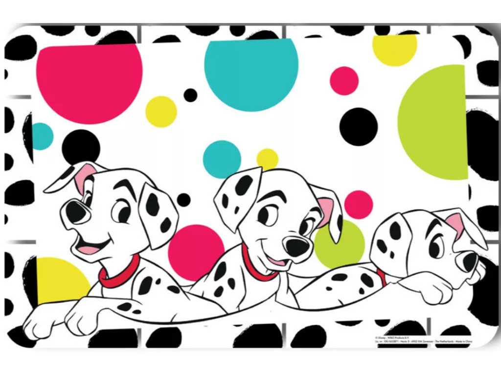 Praktické samostatné prostírání pro zpříjemnění stolování vašich dětí a pokud u toho asistují štěňata dalmatinů, tak se bude baštit s velkou chutí. Díky obrázkům s oblíbenými filmovými a pohádkovými hrdiny si děti tyto jídelní podložky zamilují. Zároveň chrání jídelní stůl před náhodným politím a potřísněním. Jídelní podložka je suprová nejen při stolování, ale i pro hrátky s modelínou, apod. Je vyrobena z kvalitního a dobře omyvatelného plastu.