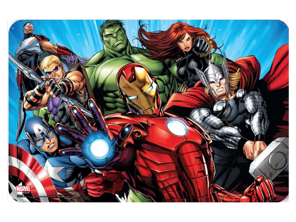 Snídaně, oběd, večeře či svačina ve společnosti hrdinů Avengers to bude klukům šmakovat! Výhodou dětského prostírání je snadno omyvatelný povrch a zároveň chrání jídelní stůl před náhodným politím a potřísněním. Jídelní podložka je suprová nejen při stolování, ale i pro hrátky s modelínou, apod. Je vyrobena z kvalitního a ohebného plastu a opatřena trvanlivými barvami.