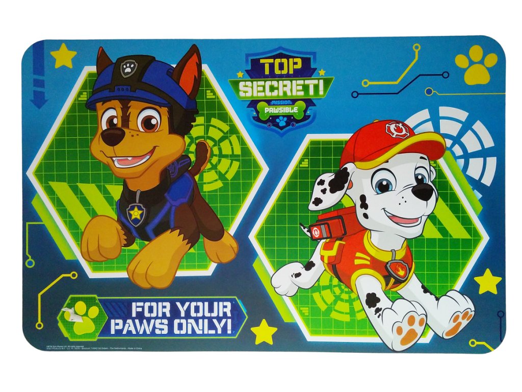 Jídelní podložka s oblíbenými pejsky záchranáři. Suprová nejen při stolování, ale i pro hrátky s modelínou, apod.