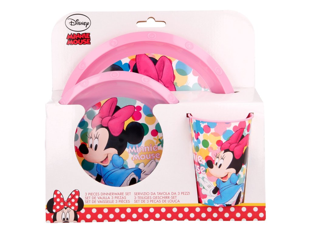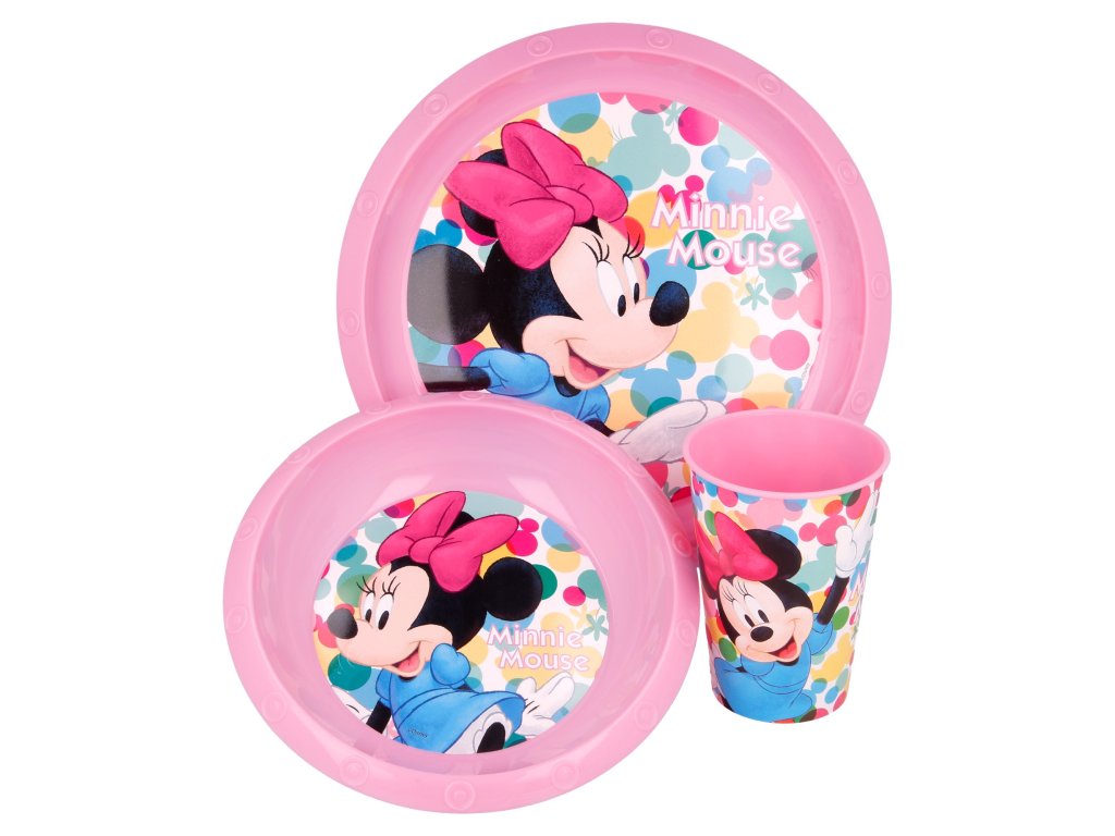 Jídelní set MINNIE bublinky s kelímkem růžová 3dílná