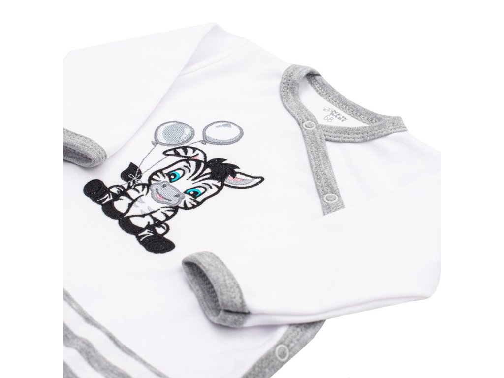 Bavlněný overal s bočním zapínáním české značky New Baby Zebra exclusive pro miminka. Overálek je zdoben vyšitým obrázkem roztomilé zebry a spodní část je celopotištena pruhy. Obrázek je podšitý látkou. Boční zapínání na cvočky po celé délce a mezi nožičkami. Pro miminka je důležitým kouskem oblečení a při jakémkoliv pohybu jsou zádička miminka stále přikrytá. Složení: 100% bavlna.