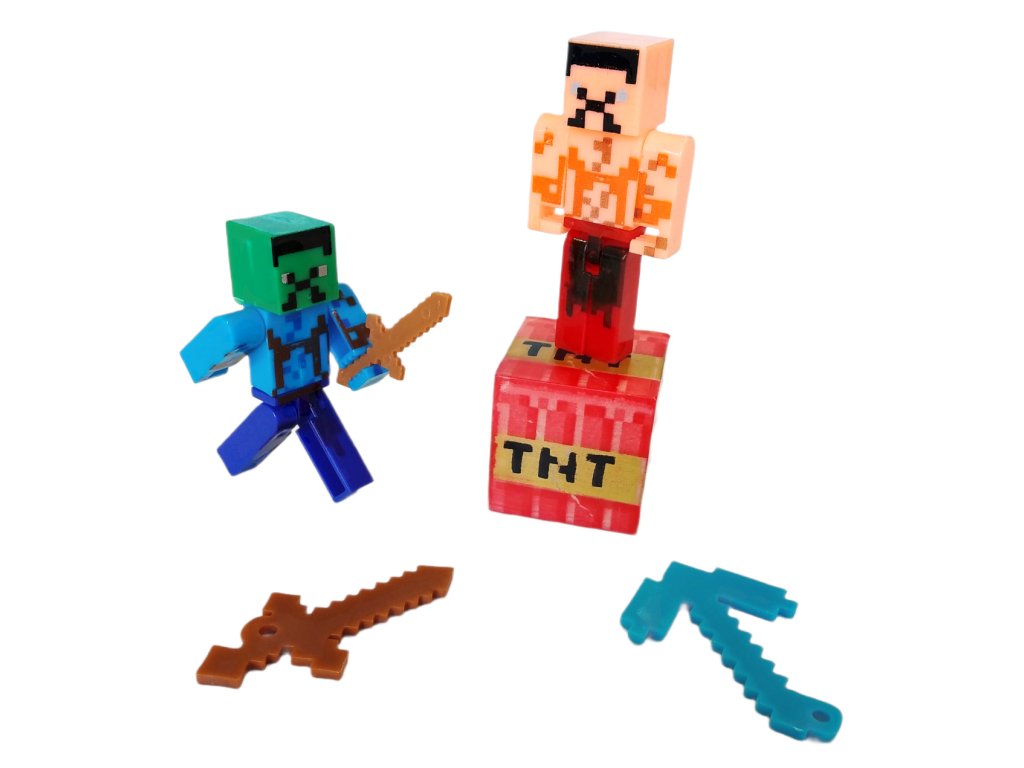 Každá figurka i doplněk jsou vyrobeny z lehkého plastu, který je odolný a zároveň bezpečný pro děti. Všechny části mají typický hranatý vzhled, který věrně napodobuje herní prostředí. Díky kompaktní velikosti se s nimi dobře manipuluje a snadno se kombinují s dalšími hračkami ze série.