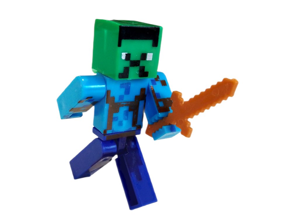 Balení obsahuje celkem 12 prvků, mezi nimiž nechybí ikonický pixelový meč vydávající zvuky, figurky postav a nepřátel, nástroje ani obávaný Ender Dragon. Díky autentickému designu působí celý set jako skutečně oživený svět Minecraftu.