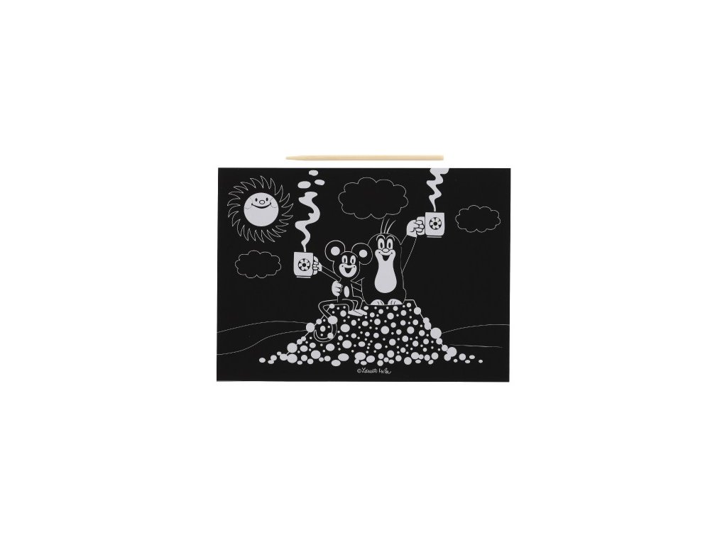 I Krteček a Žabka si v chladném dnu rádi dají teplý čajíček a přináší vám super zábavu nejen pro zimní nebo deštivé dny. Krteček a jeho přátelé zabaví vaše děti prostřednictvím škrabacích obrázků. Vyškrabává se pomocí dřívka, které je součástí balení.