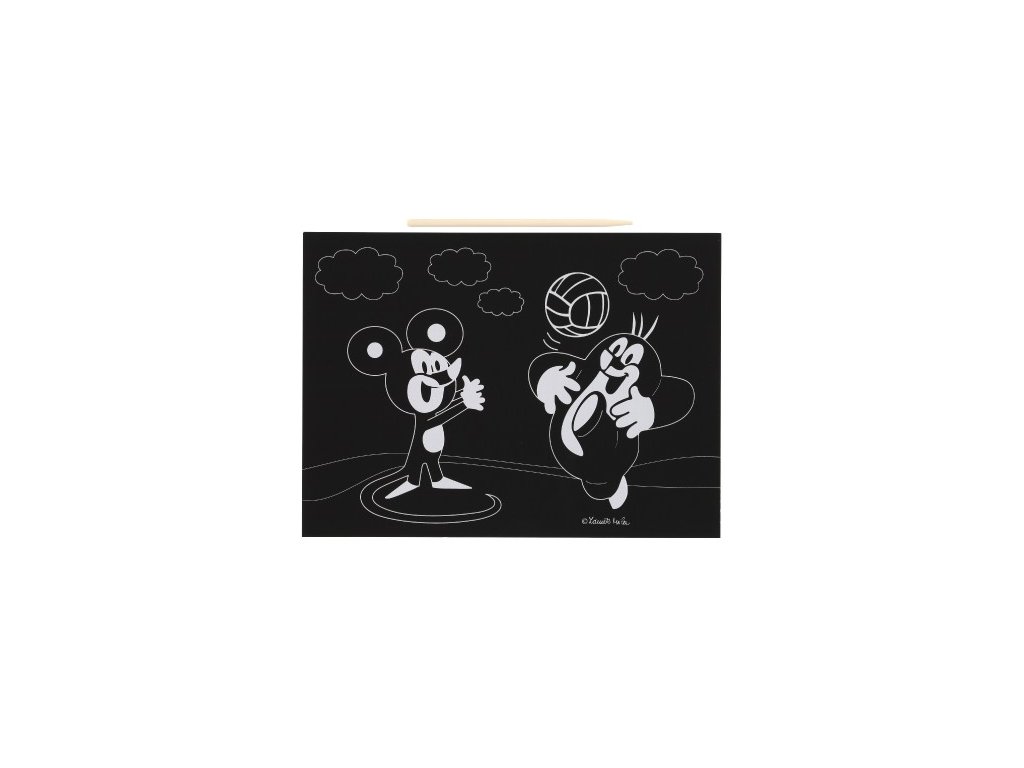 I krtek umí hrát fotbal a spolu s myškou tvoří skvělý tým, který zabaví vaše děti prostřednictvím škrabacích obrázků. Vyškrabává se pomocí dřívka, které je součástí balení.