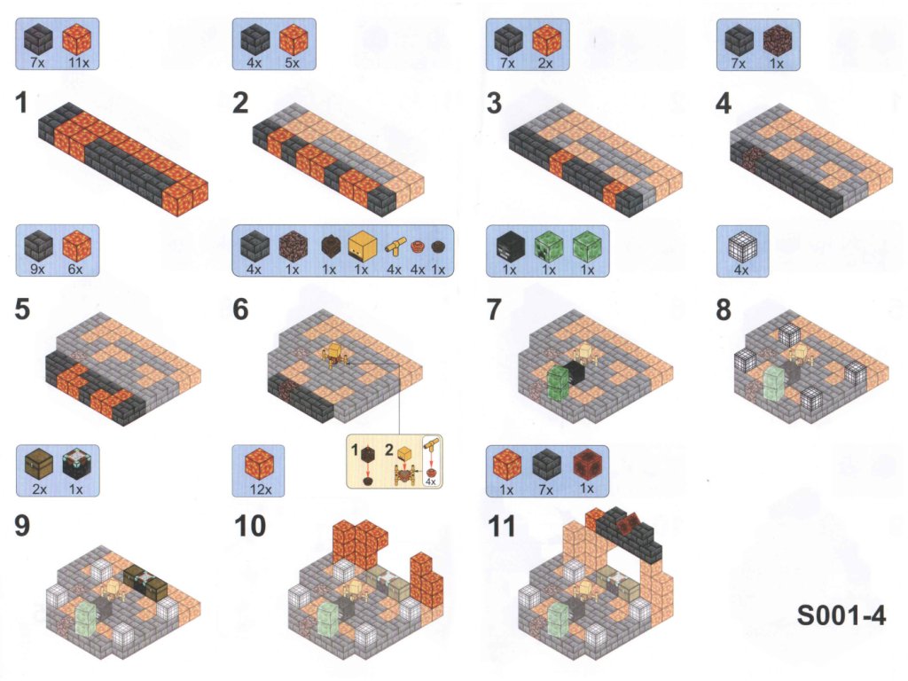 Sada obsahuje různé bloky pro stavbu scén s lávovými sloupy, truhlami s pokladem a nepřáteli, jako jsou Creeper, zombíci a skeleton. Nechybí ani hrdinové s krumpáčem a mečem. Všechny dílky jsou magnetické, snadno se skládají a přestavují.