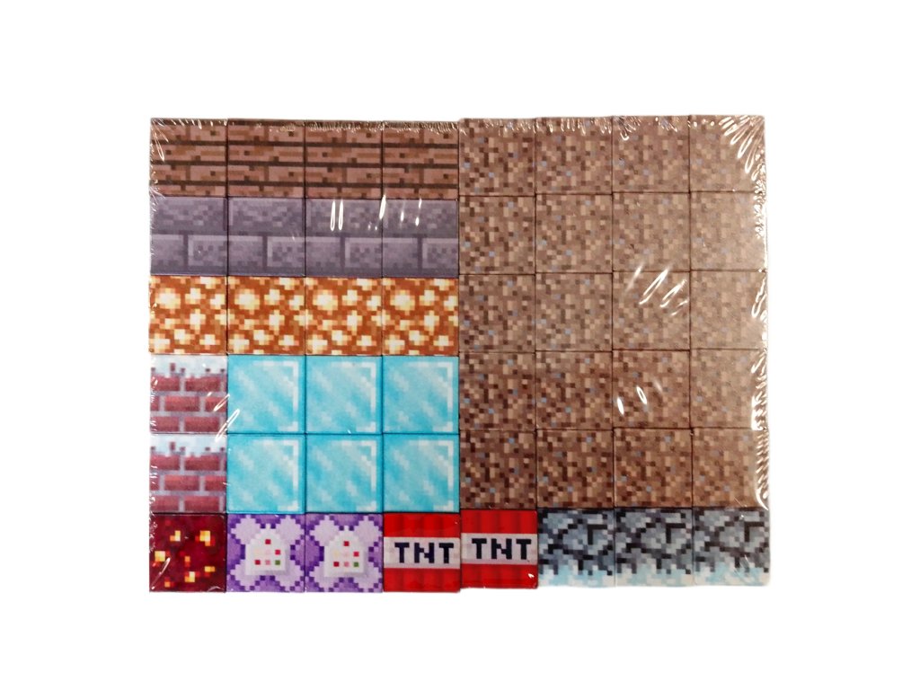 Stavebnice obsahuje 50 magnetických dílků, které se snadno spojují díky vestavěným magnetům. Součástí balení jsou dvě figurky postav ve stylu pixel art a různé stavební bloky jako ledové kostky, trávníkové bloky, TNT a další texturované kostky, které věrně kopírují vzhled z populární hry.