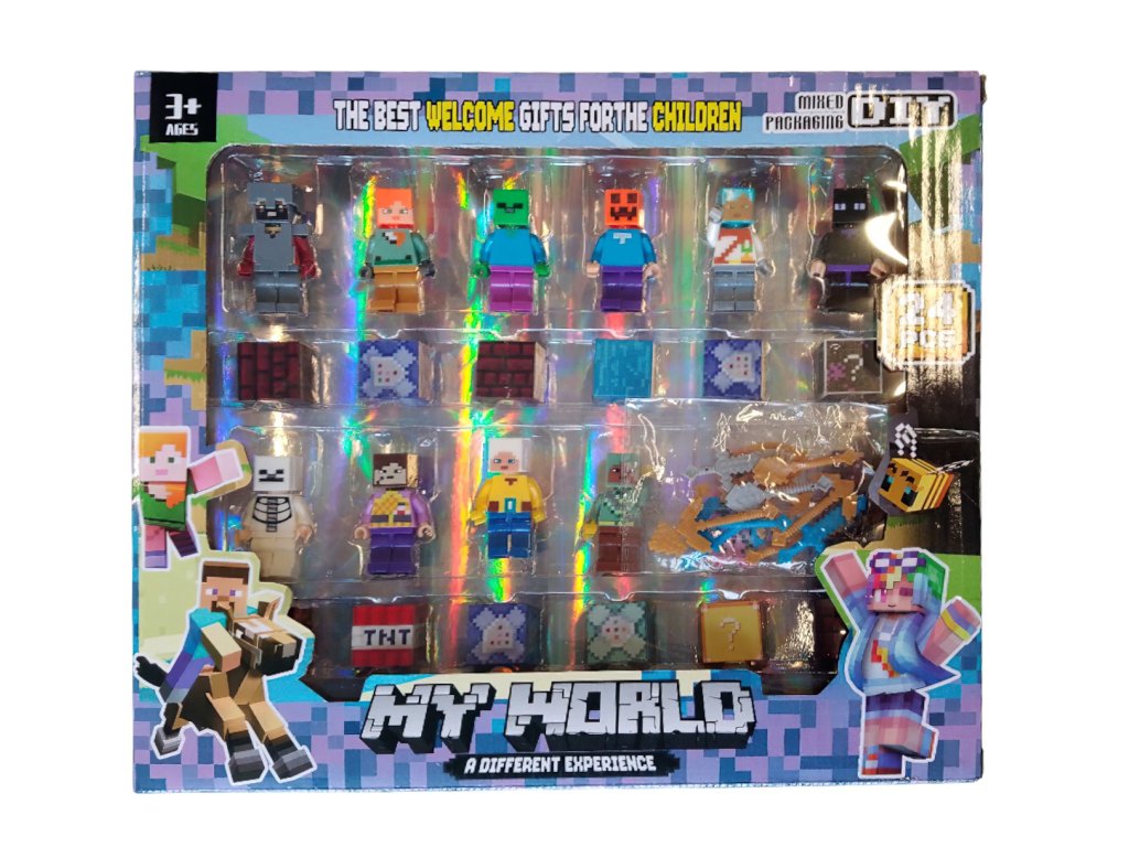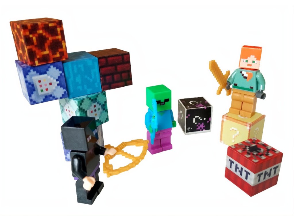 Figurky věrně napodobují známé charaktery ze hry Minecraft – od hráčů, zombie, kostlivců až po endermana nebo creepera. Nechybí ani tematické bloky jako TNT, tráva, dřevo či láva, které znásobují možnosti kreativní hry.