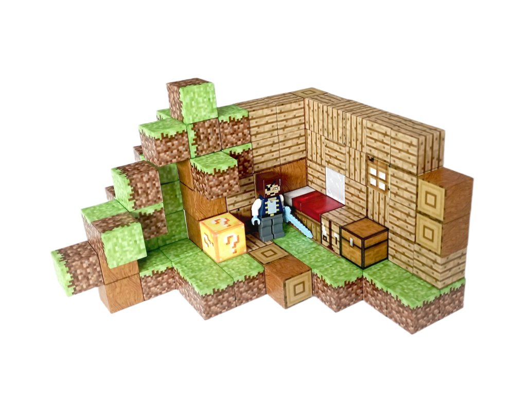 - 100 ks magnetické kostky – lucky block, okno, postel, dřevo, tráva, truhla, crafting table, surprice...