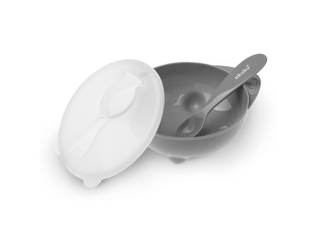 S miskou a lžičkou Akuku snadno a rychle jídlo pro děti zabalíte i na cestu. Praktická sada obsahuje plastovou misku a lžičku. Speciální úchyt zjednodušuje držení misky. Ve víku je místo pro plastovou lžičku s krytem, což je velmi praktické při cestování, protože se Vám od špinavé lžičky nic nezašpiní a lžička se neztratí.