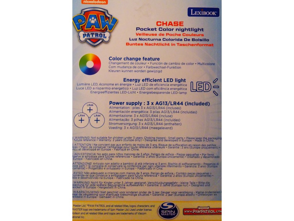 Noční světlo TLAPKOVÁ PATROLA CHASE color