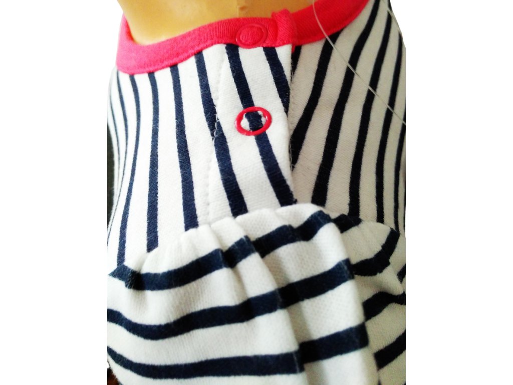 Krásný a velmi příjemný letní overálek, materiál je pružný, motiv celolátkový. Zapínání v rozkroku na patentky a pro snadné oblékání i dva patentky na ramínku u krku.