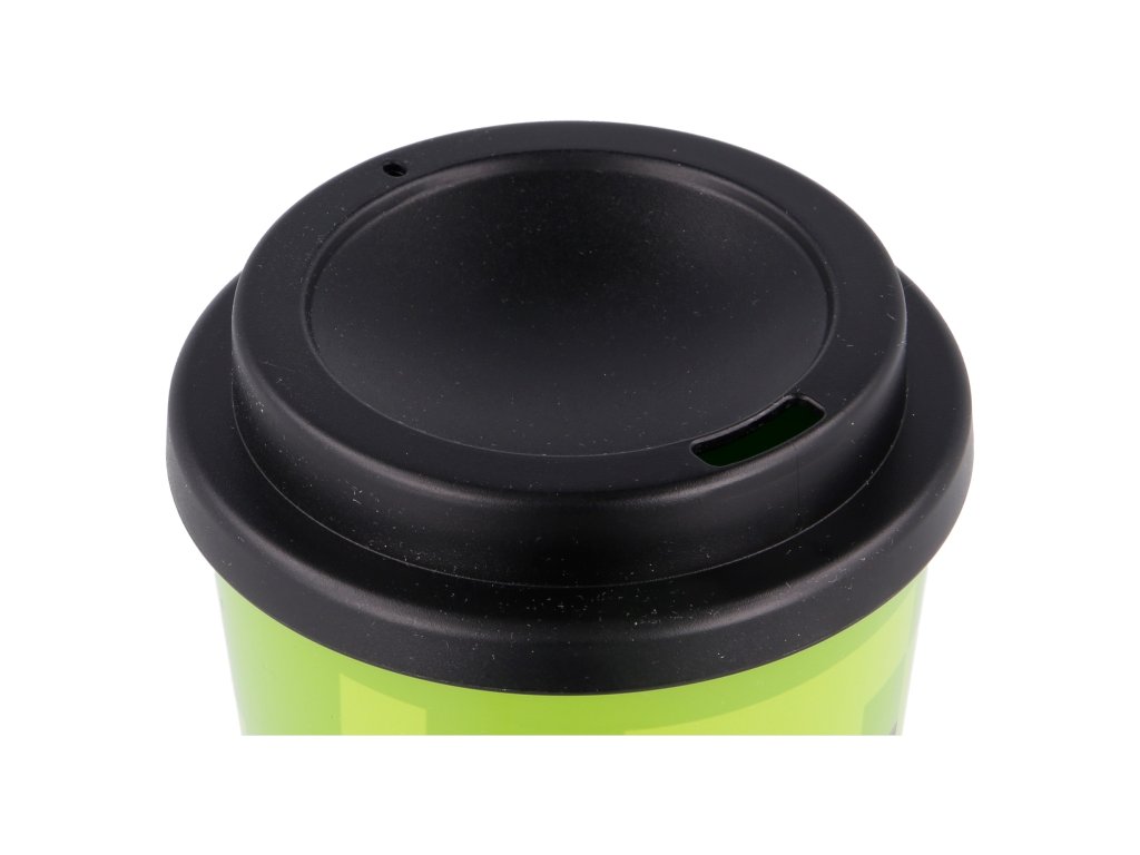 Tento velkokapacitní hrnek je určen pro opravdové milovníky kávy na doma i do auta. Díky dvojité stěně, která udrží teplotu obsahu mnohem déle, a bezpečnostnímu šroubovacímu uzávěru, který zabrání potřísnění a náhodnému polití je kelímek hodnocen nejvyšší známkou. V horní části víčka je otvor pro pohodlné pití.
