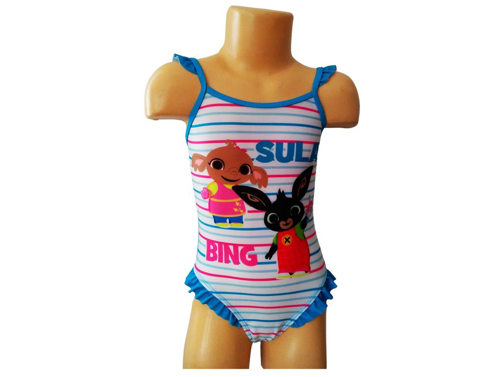 Plavky ZAJÍČEK BING A SULA s proužky jednodílné modré