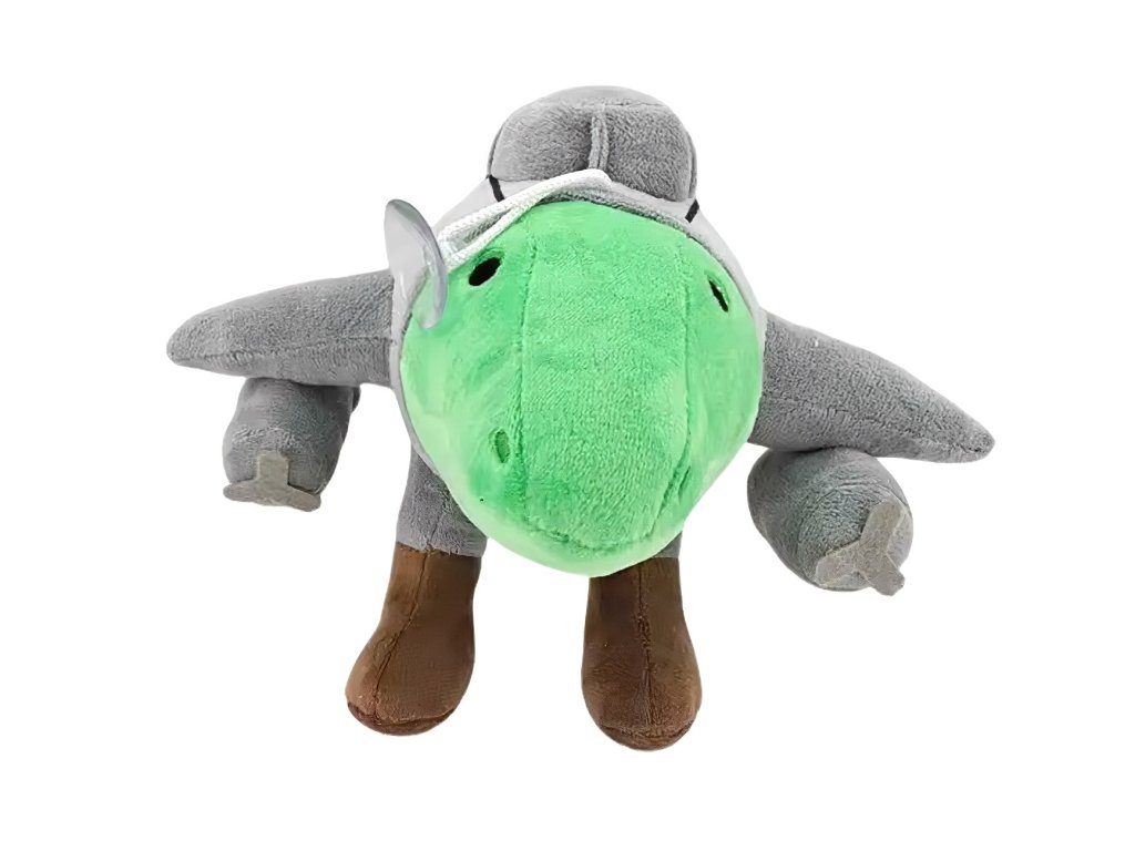 Tělo hračky je tvořeno hebkým šedým plyšem, připomínajícím letadlové křídla a trup, zatímco přední část s hlavou krokodýla je zářivě zelená a příjemná na dotek. Hnědé nožky dodávají postavičce nečekaný a komický prvek, díky kterému si ji zamilují děti i dospělí. Se svými rozměry je ideální na hraní i jako originální doplněk sbírky fanoušků série Brainrot. Její výrazný vzhled okamžitě zaujme každého, kdo má rád netradiční plyšáky.