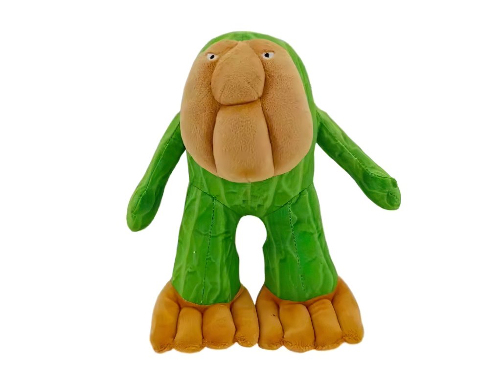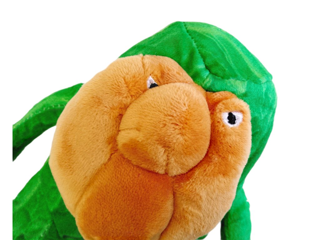 Tato hračka je vyrobena z měkkého plyše příjemného na dotek. Kombinace zeleného a hnědého materiálu působí kontrastně a zábavně, přičemž švy jsou pevné a odolné vůči častému mačkání a tahání. Díky kvalitnímu zpracování je vhodná jak pro děti, tak i jako vtipný dárek pro dospělé.