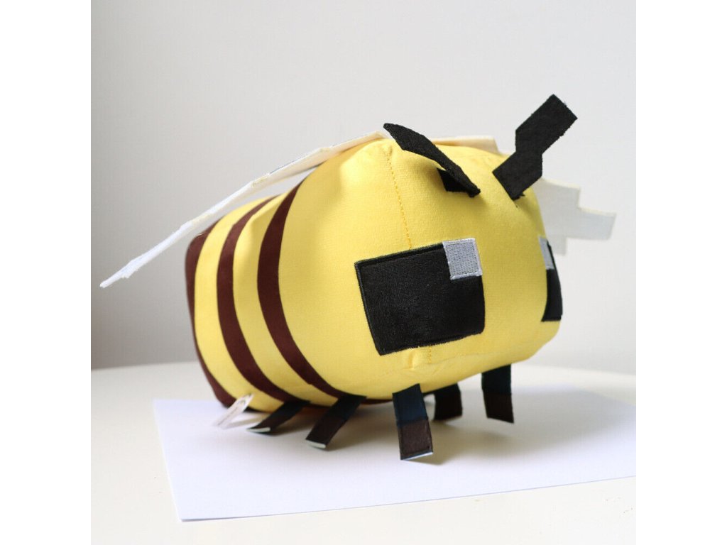 Tato 18 cm velká včelka věrně kopíruje svou herní předlohu – má typický pixelový vzhled, kostkované tělo a roztomilý výraz, který si zamilují děti i dospělí. Díky svému originálnímu zpracování se stane oblíbenou součástí každé sbírky. Hračka je vyrobena z hebkého a kvalitního plyše, který je příjemný na dotek a zároveň odolný. Plastová křidélka a vyšité detaily dodávají včelce autentický vzhled. Žlutohnědé pruhy a výrazné černé oči působí přesně jako ve světě Minecraftu.