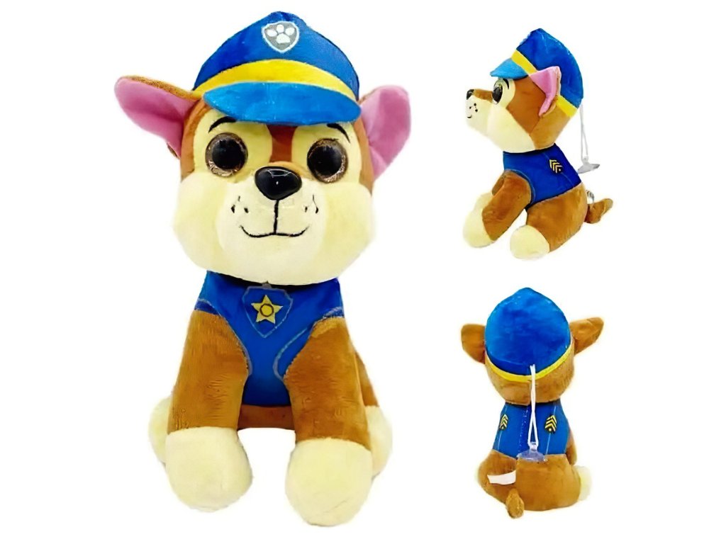 Plyšová hračka Chase z oblíbeného dětského seriálu Tlapková patrola potěší každého malého fanouška statečných psích záchranářů. Policejní pejsek Chase, oblečený v typické modré uniformě a čepici s odznakem, je připraven vyrazit do akce a dohlížet na pořádek ve světě dětské fantazie.