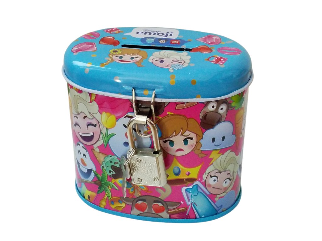 Praktická a krásná kovová pokladnička, v horní části otvor na vhazování mincí. Součástí je i zámeček, takže pokladničku lze používat opakovaně. Vaše děti se naučí šetřit a po naplnění mohou vyrazit na nákup.